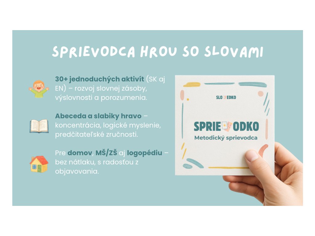Doprajte svojim deťom detstvo plné farieb, pohybu, smiechu a spoločných chvíľ. So Slovedkom sa učenie mení na zážitok. Slovedko je Montessori inšpirovaná pomôcka pre rozvoj nielen reči: obsahuje 230 kariet, 35+ variácií hier a úvod do angličtiny. Je to produkt, ktorý nestarne, ale rastie s vaším dieťaťom – od 2 rokov cez škôlkara až po školáka. Investícia do slovnej zásoby a kreativity, ktorá sa násobne vráti.